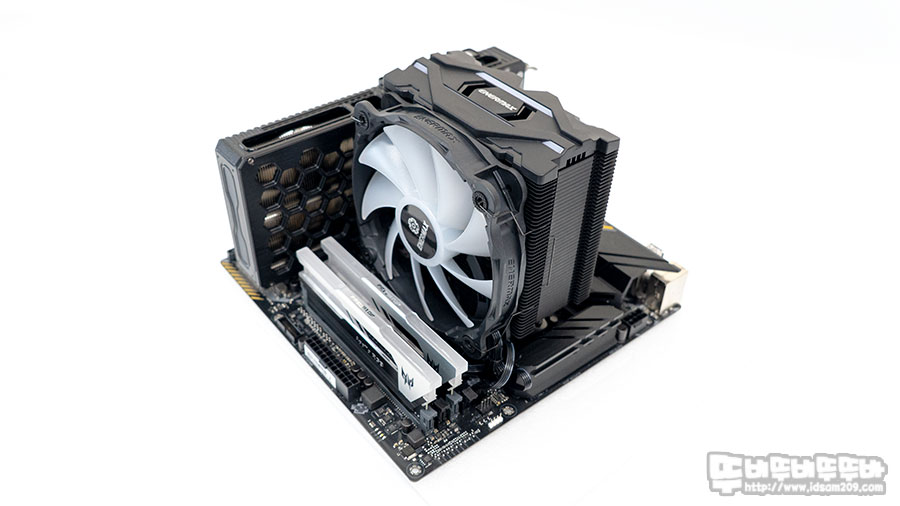 에너맥스 ETS-F40-FS ARGB CPU 쿨러 베이스는 비대칭으로 디자인되어 쿨러를 장착해야 하며 쿨러의 모든 장착이 완료된 이후 140mm 쿨러를 결합해주면 됩니다.