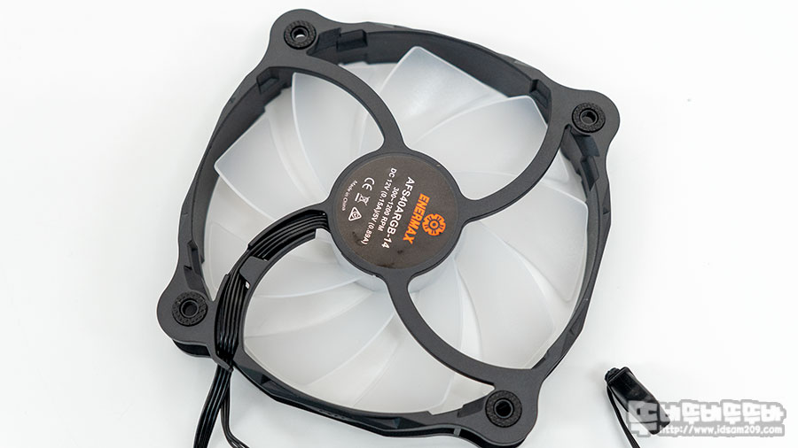 쿨링 팬 프레임에 인쇄된 ENERMAX 로고 모습.