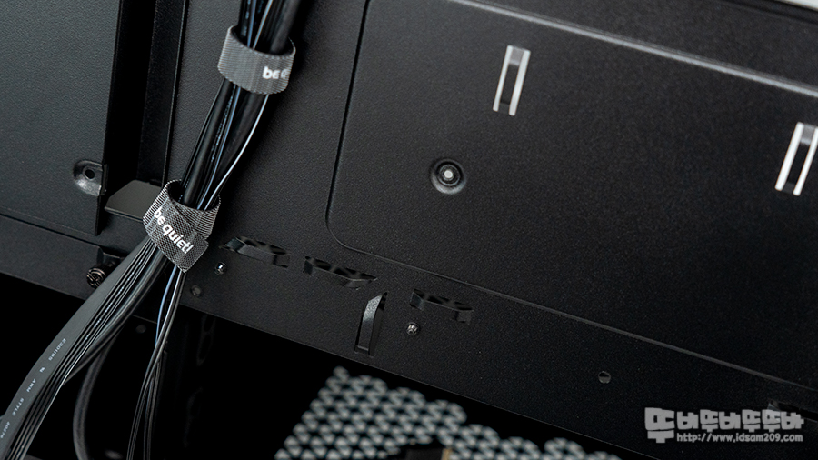 샤시 후면에는 벨크로 타이를 기본으로 제공하며 케이블 타이를 이용한 고정이 가능한 마운트가 곳곳에 돌출되어있어 케이블 정리가 한결 깔끔하게 정리할 수 있었습니다.
