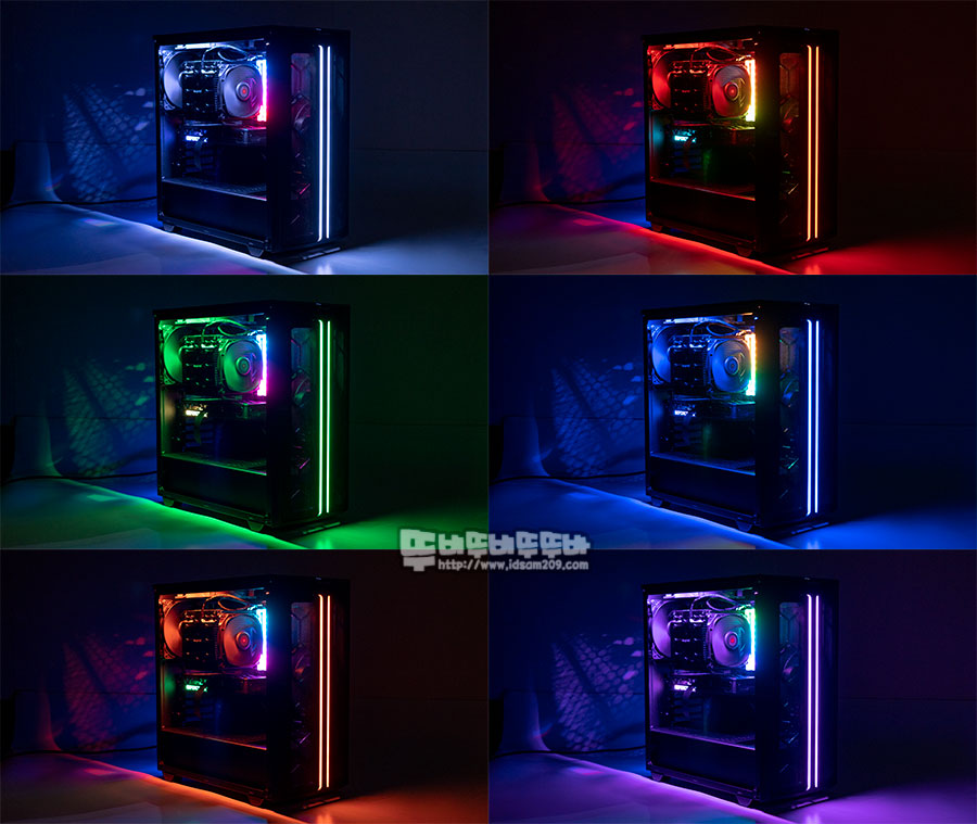 사진과 같이 전면과 케이스 내부의 ARGB LED 바를 통한 LED 라이팅 효과로 블링블링한 케이스 모습을 연출할 수 있으니 잘 활용하시면 좋을 거 같네요.