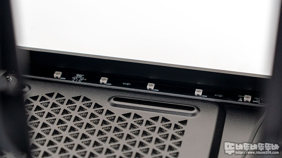 눈으로 보이지 않는 상단 샤시 안쪽에 ARGB LED 바가 기본으로 내장되어있어 ARGB LED 효과가 없는 쿨러를 사용하는 케이스지만 ARGB LED 바 덕분에 분위기 있는 연출이 가능하네요.
