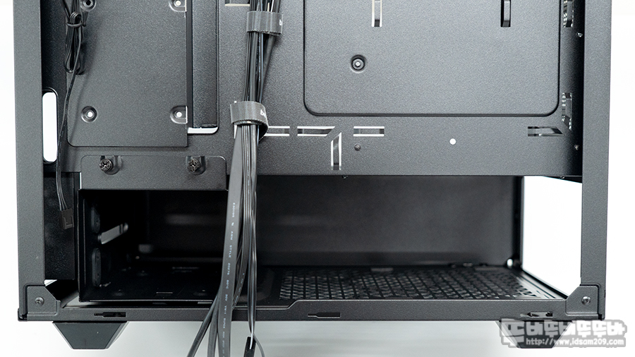 샤시 후면에는 벨크로 타이를 기본으로 제공하며 케이블 타이를 이용한 고정이 가능한 마운트가 곳곳에 돌출되어있어 케이블 정리가 한결 깔끔하게 정리할 수 있었습니다.