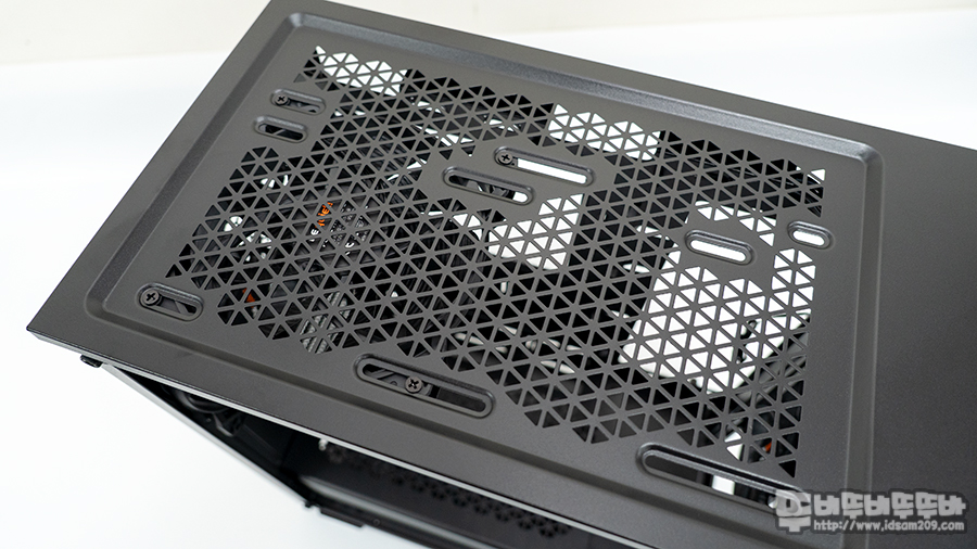 케이스를 디테일하게 살펴보자면 먼저 상단에 탈부착이 가능한 먼지 필터를 볼 수 있는데요.