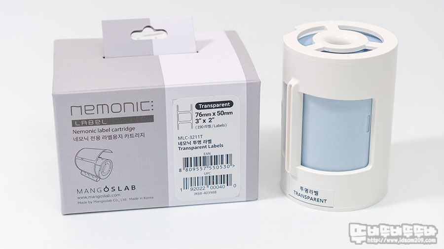 기본 카트리지는 3X2 인치 규격으로 라벨 용지 한칸당 76 X 25mm 사이즈로 되어있어 앱이나 전용 프로그램 이용 시 3X2인치 선택을 하시고 사용하시면 좋습니다.