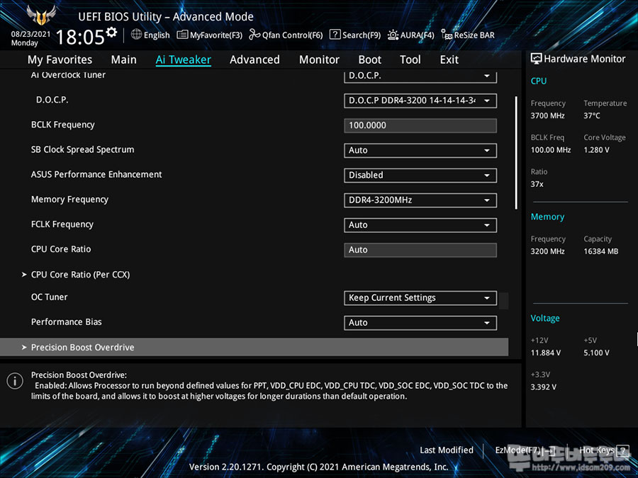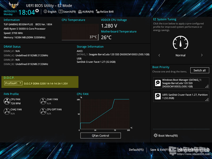 XMP를 지원하는 제품답게 간단한 선택으로 3200MHz 클럭 오버 지원이 가능하여 초보자도 쉽게 작업할 수 있습니다.