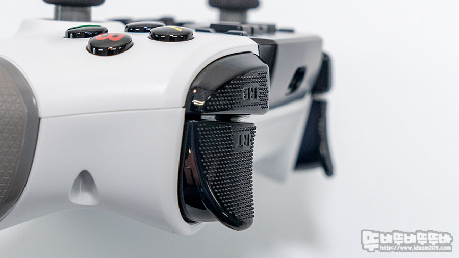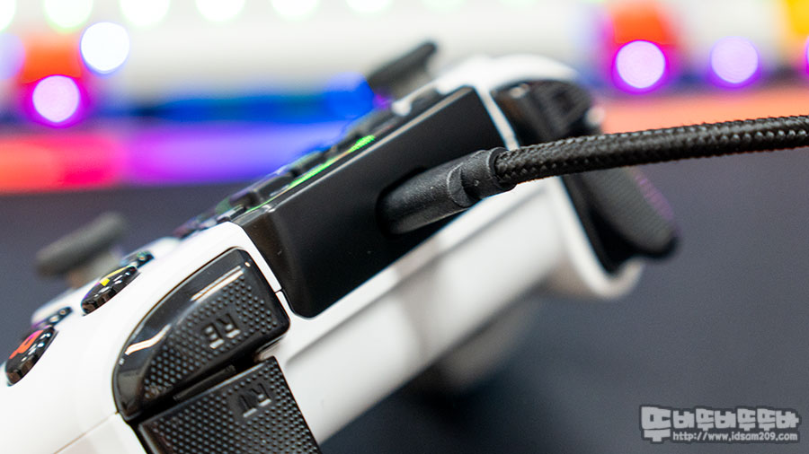 패드 전면에는 범퍼와 트리거 그리고 중앙에 유선 모델답게 USB-C 단자로 구성되어 있습니다.