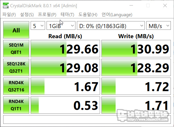 5GB 더미 파일 133.9MB/s 40.1초, 10GB 더미 파일 137.0MB/s 1:18초로 읽기와 쓰기 속도가 크게 차이 나지 않는 안정적인 속도를 보여주고 있습니다.