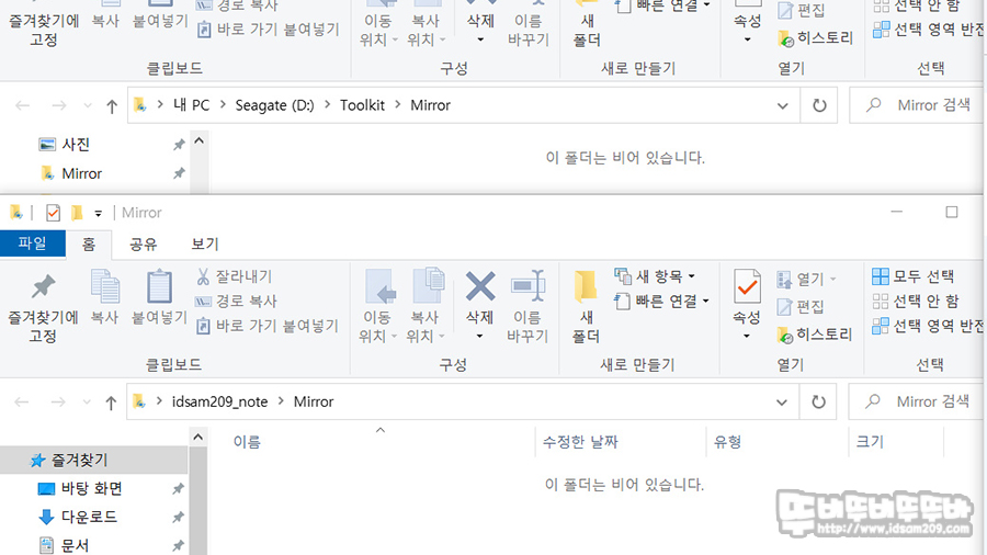 미러의 경우 PC와 외장 HDD의 동일한 Mirror 폴더를 통해 두 곳의 데이터를 똑같이 유지하는 기능으로 요즘 흔하게 많이 사용하는 PC와 클라우드 연동 공유 방식을 생각하시면 될 거 같네요.