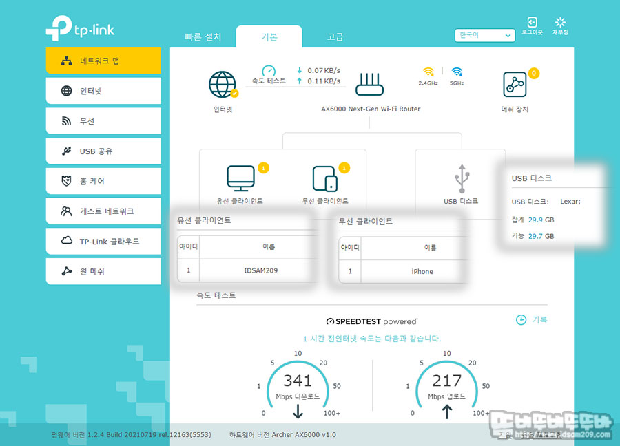 특히 네트워크 맵에서 보여주는 클라이언트 정보나 USB 디스크 정보는 해당 메뉴를 클릭 시 연결 상태를 상세하게 알려주기에 전체적으로 보기 편하게 디자인되었습니다.