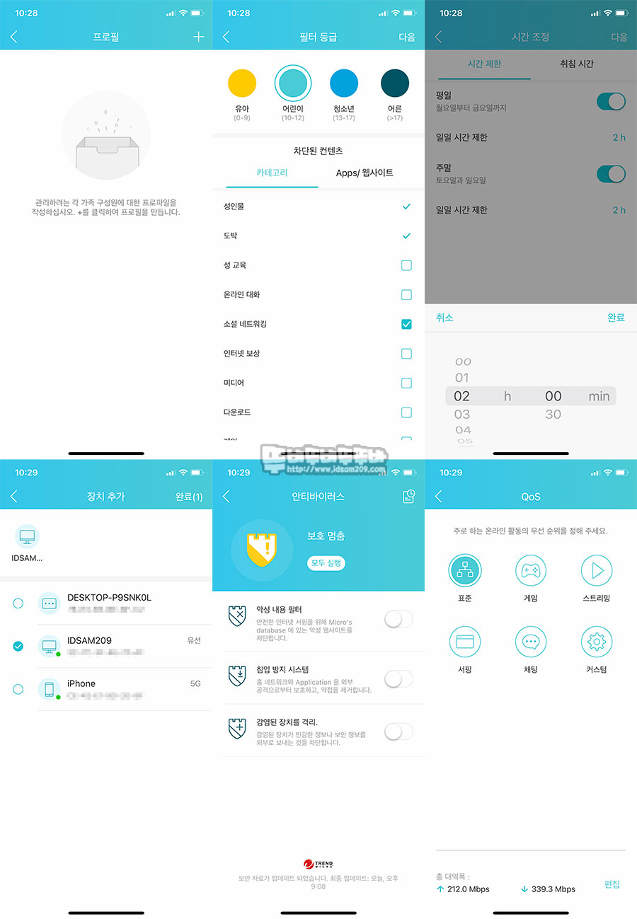 여기에 나이별 컨텐츠 필터링 항목을 지원하며 요일, 시간 등을 세분화하는 설정을 지원하기에 좀 더 쉬운 자녀의 인터넷 관리 설정을 지원하고 있습니다.