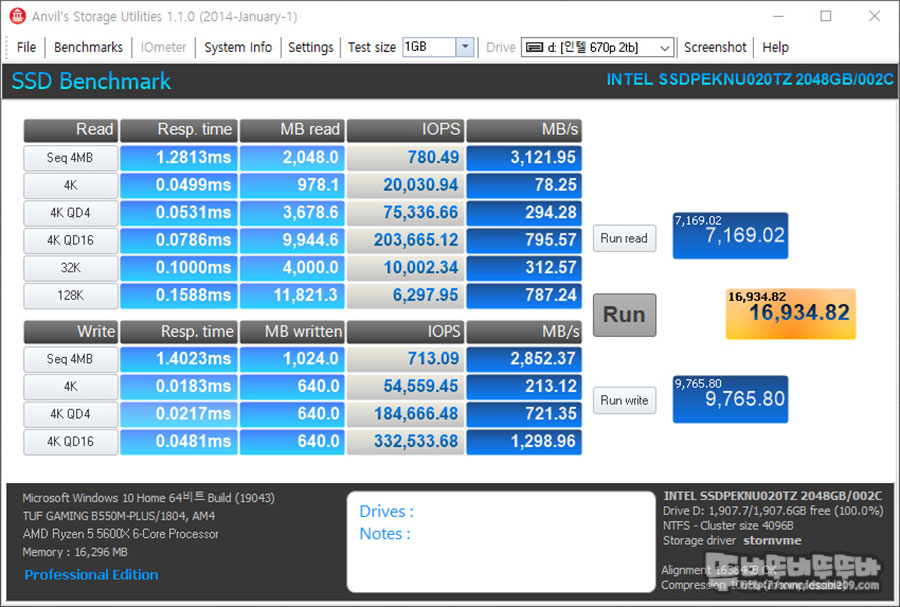 조금 더 저렴해지는 가격 경쟁력을 갖춘다면 나름 괜찮은 제품이니 QLC 제품도 관심 두고 지켜봐 주시기 바라며 인텔 670p M.2 NVMe 2TB QLC SSD 리뷰를 마칩니다.