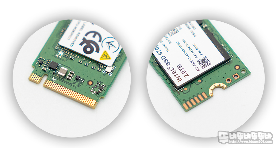 인텔 670p M.2 NVMe SSD는 2280 규격의 SSD로 밝게 보이는 녹색 PCB 전면에 컨트롤러, DRAM, 메모리를 내장하고 있으며 M.2 방식의 PCIe 3.0 x4 속도를 지원하기에 현존하는 대부분의 노트북과 PC에 사용이 가능합니다.