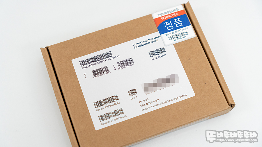 인텔 670p M.2 NVMe 2TB QLC SSD 패키지는 두툼한 무지 박스 포장에서 유통사 피씨디렉트의 정품인증 스티커 모습을 확인할 수 있는데요.