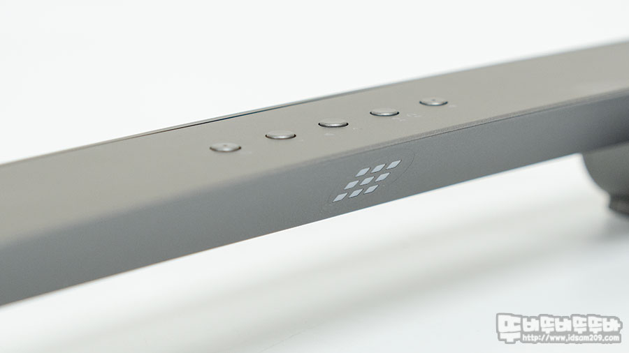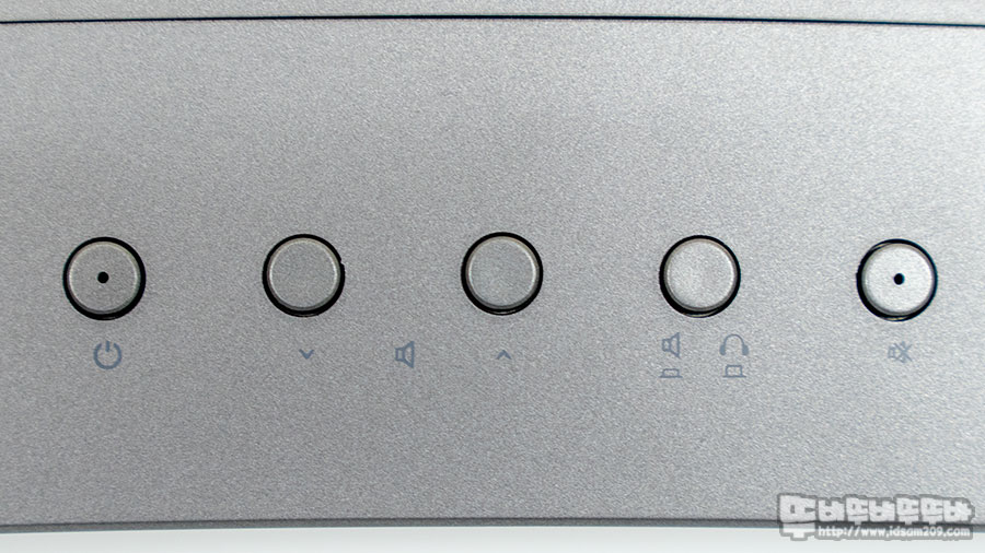 제품은 1800R 커브드가 적용된 제품이기에 커브드 모니터와 사용 시 일체감 있는 사용을 지원하며 스피커 상단에는 컨트롤 버튼이 있습니다.