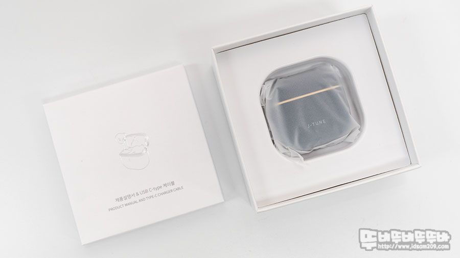 제품은 트리플제이 J-TUNE J10 블루투스 이어폰과 충전용 USB-C to A 케이블, 사용 설명서로 구성되어있습니다.
