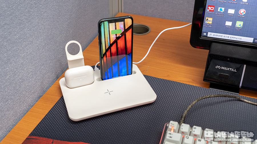 스마트폰 초기에는 대부분 스마트폰만 사용했지만, 요즘은 무선 이어폰, 스마트 워치 등 스마트폰의 기능을 편리하게 사용할 수 있는 주변기기를 많이 사용하게 되면서 동시에 충전해야 하는 상황이 일상화된 요즘 꼭 필요한 아이템인데요.