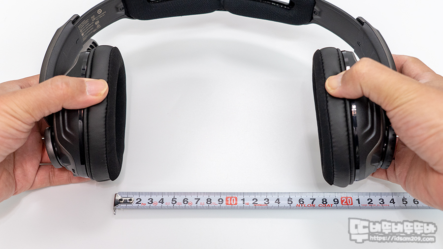 필자는 안경을 착용 중이라 안경다리 폭을 확인해보면 약 15cm 정도 되는데 헤드셋 좌우 폭이 18cm면 꽤 넉넉한 편이라 착용감이 좋은 편입니다.