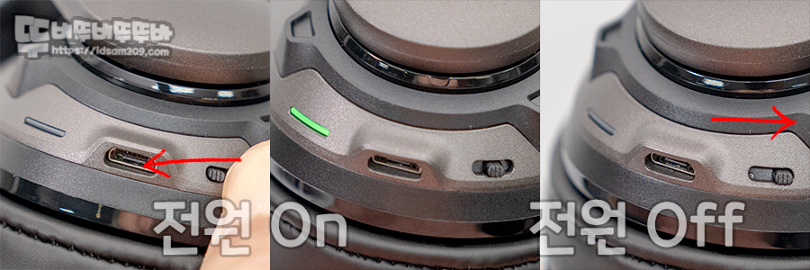 무선 헤드셋이지만 특별하게 기능이 많은 편이 아니기에 왼쪽 유닛 부분에는 MicroUSB 충전단자를 기준으로 왼쪽에는 LED 인디케이터, 오른쪽에는 조그 방식의 전원 스위치가 내장되었으며 오른쪽 유닛 부분에는 무한 볼륨 다이얼이 장착되어있습니다.