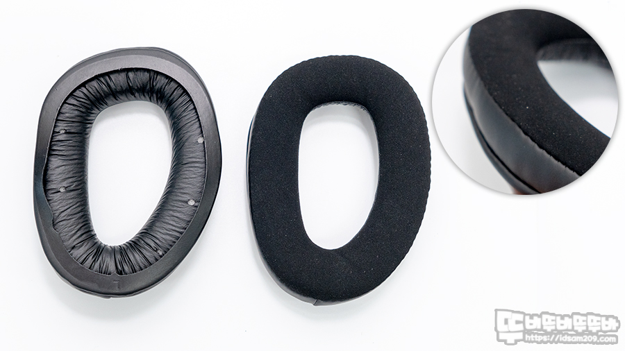 귀를 덮는 폐쇄형 이어패드는 메모리 폼에 인조가죽과 스웨이드 2가지 재질을 사용하여 피부와 접촉면은 부드럽게 귀 주변은 차음을 도와주고 있어서 몰입감 있는 게임을 지원합니다.