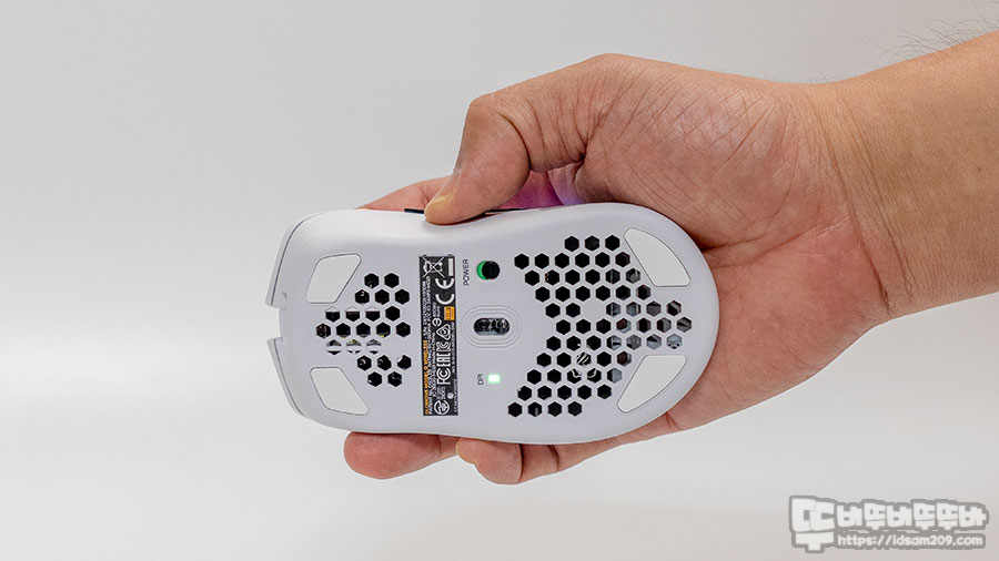 마우스 상단과 하단 분에는 공기 흐름을 원활하게 해주는 허니콤 타공이 적용되어 오랜 시간 마우스 사용 시 손바닥과 마우스 팜 하우징 사이에 습기 없이 쾌적한 마우스 사용을 지원합니다.