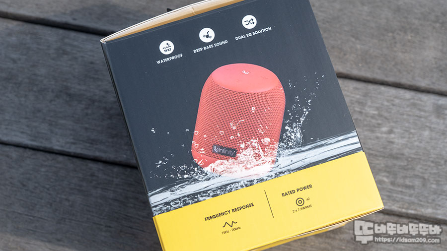 블루투스 버전 4.2에 7.5W 45mm 드라이브 유닛 2개를 이용한 최대 15W 출력을 지원, 2500mAh의 대용량 배터리 내장으로 최대 10시간 사용, IPX7 방수 기능 그리고 블루투스 스피커 사운드를 취향에 맞게 들을 수 있는 듀얼 EQ를 지원하는 괜찮은 구성으로 디자인된 제품임을 확인할 수 있네요.