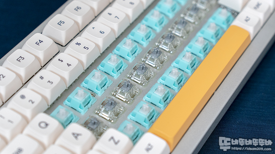 키압이 60g으로 표기되어 있지만 실제 느낌은 체리 MX 적축 느낌으로 Unlubed(비 윤활) Lynx(링스) 스위치 스템의 사각이는 느낌과 스위치를 눌렀을 때 가벼운 소음을 들려주지만, Lubed(윤활) Lynx(링스) 스위치는 윤활의 영향으로 정숙한 느낌을 주네요.