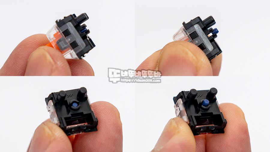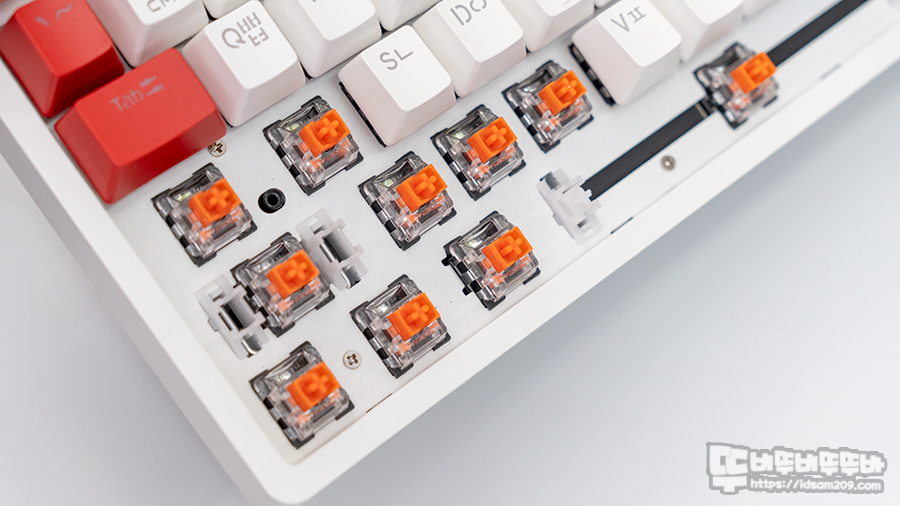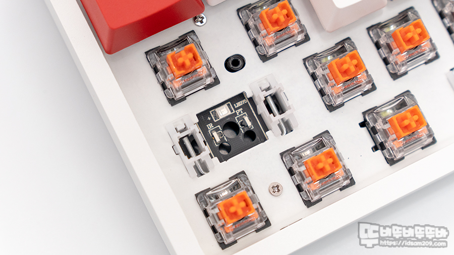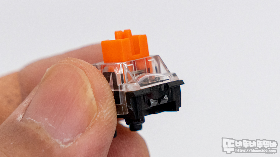 광축 스위치는 대부분 방수 기능이 들어간 기판에 빛을 차단하는 스위치를 사용하는 구조이기에 음료 침수에도 안심하고 사용할 수 있는 게 강점이니 참고하시기 바랍니다.