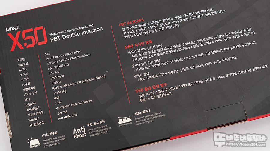 #마이크로닉스 #마닉 #MANIC #X50 #4세대 #JIXIAN광축 #완전방수 #PBT키캡 #게이밍키보드 #뚜비뚜비뚜뚜바 #idsam209