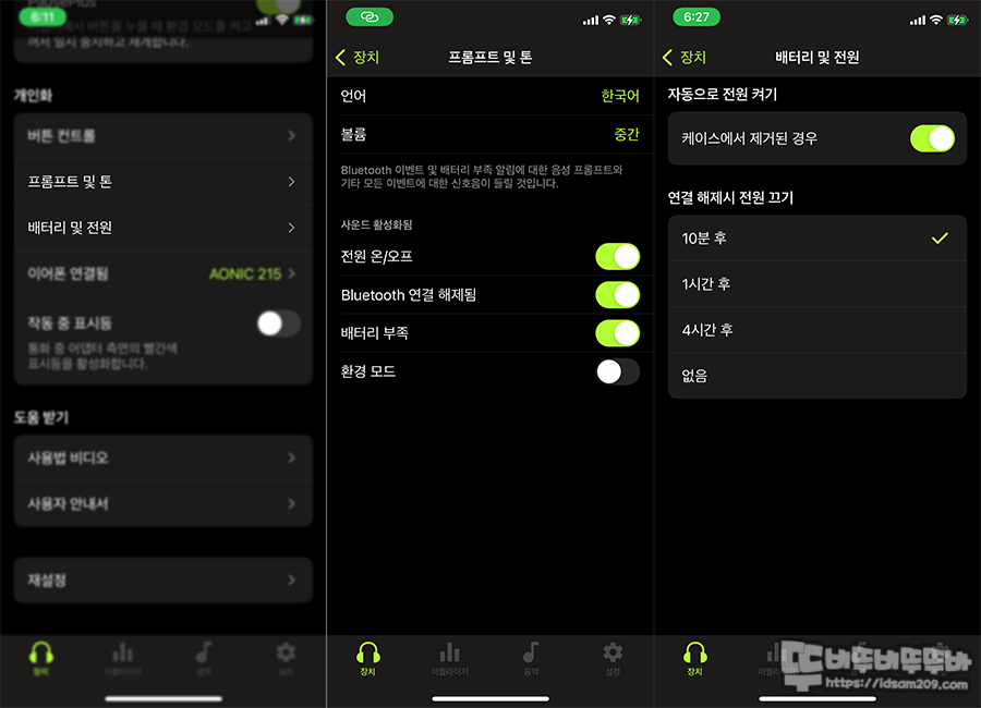 앱의 첫 화면은 직관적으로 보여주는 배터리 상태와 노이즈 제어 기능인데요.