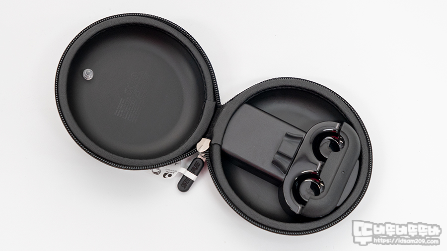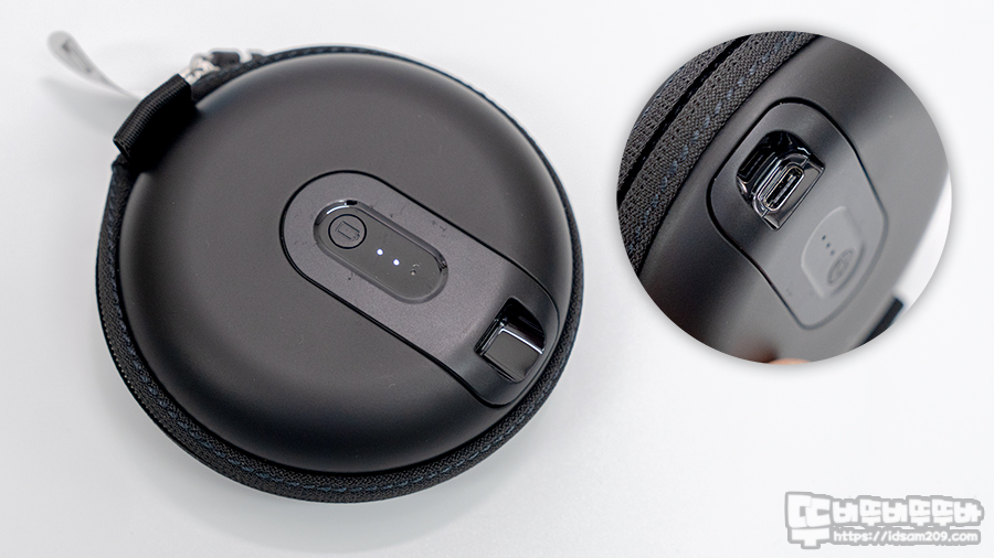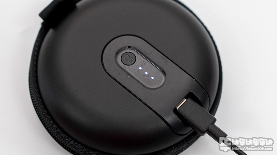 충전 케이스 안쪽에는 블루투스 이어폰이 수납되는 구조로 되어있는데 보통의 무선 이어폰처럼 자석으로 결합되는 방식이 아니기에 이어폰 충전 시 충전 케이스에 고정하는 부분이 초반에 살짝 불편함이 있지만 자주 사용하다 보니 무뎌지네요.