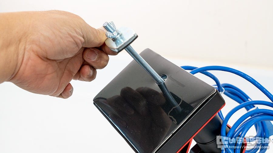 이후 구성품으로 제공하는 삼각형 브라켓에 지지 나사를 결합 후 미끄럼 방지 패드를 부착하고 책상 아래쪽에서 고정하는 플레이트와 너트로 고정해 주면 됩니다.