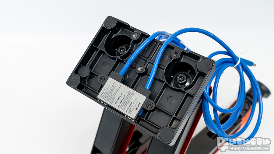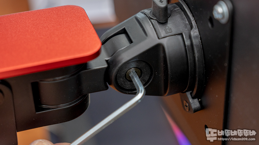 제품 측면에 확인 가능한 제품 컬러 확인이 가능한데 필자가 리뷰하는 제품은 RED 컬러 듀얼 모니터 암입니다.