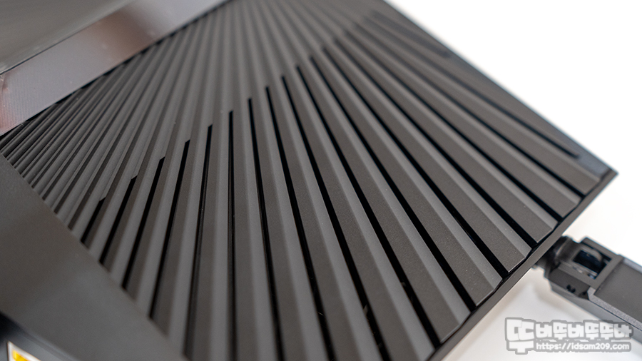 티피링크 Archer AX90는 외형적으로 보면 전투적인 이미지가 느껴지는데 아마도 160mm 길이의 삼각형 안테나와 상단에 중심에서 뻗어나가는 프레임 디자인은 내부 발열 해소를 위한 간격을 주었는데 이러한 부분이 강렬한 느낌을 주는 거 같네요.