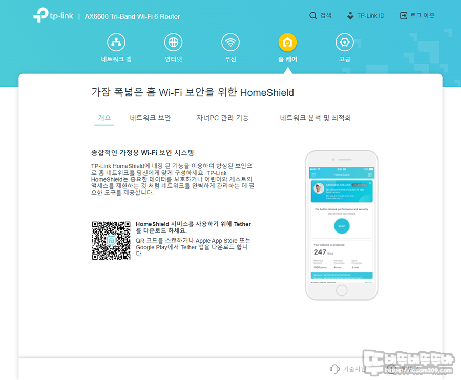 이번 제품에서는 홈 케어(네트워크 보안, 자녀 PC 관리, 네트워크 관리 등)를 직접 지원하지 않고 전용 앱인 Tether를 통해서 지원하고 있는 게 특징이 참고하셔야 할 거 같습니다.