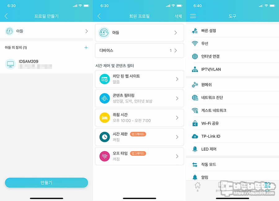 나날이 발전하고 있는 티피링크의 자녀 PC 관리 기능은 자녀의 구분과 연결된 장치 선택 후 웹 사이트 차단, 콘텐츠 필터링, 취침시간 예약 등으로 자녀의 PC 사용을 제한할 수 있으니 강제적인 차단보다는 사전에 자녀와 사용 제한에 대한 협의를 하시고 설정하시기 바랍니다.