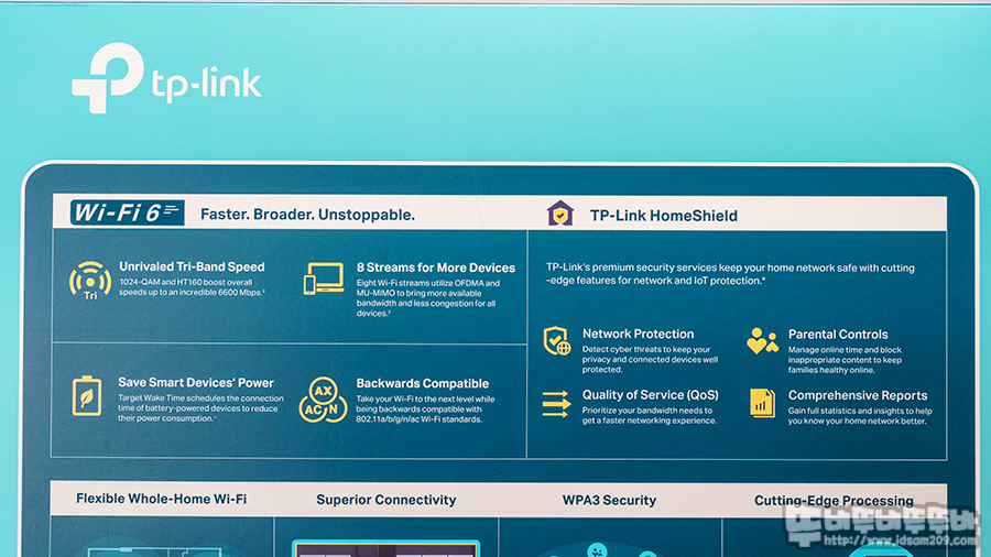 트라이 밴드 Wi-Fi 지원으로 최대 6600Mbps를 지원하는 Archer AX90는 1.5GHz 쿼드 프로세서 탑재 및 8 스트림 지원으로 OFDMA 및 MU-MIMO 및 빔 포밍 등 Wi-Fi 6를 지원하기 위한 최신 무선 기능을 탑재하고 여기에 직관적이고 편리한 UI 구성과 와 Tether 앱을 통한 관리 및 HomeShield를 기능으로 실시가 네트워크 감시로 편리하게 유무선 공유기를 관리할 수 있는 제품이니 Wi-Fi 6를 지원하는 최신 스마트 기기를 사용하시는 분들에게 강력하게 추천드리며 리뷰를 마칩니다.