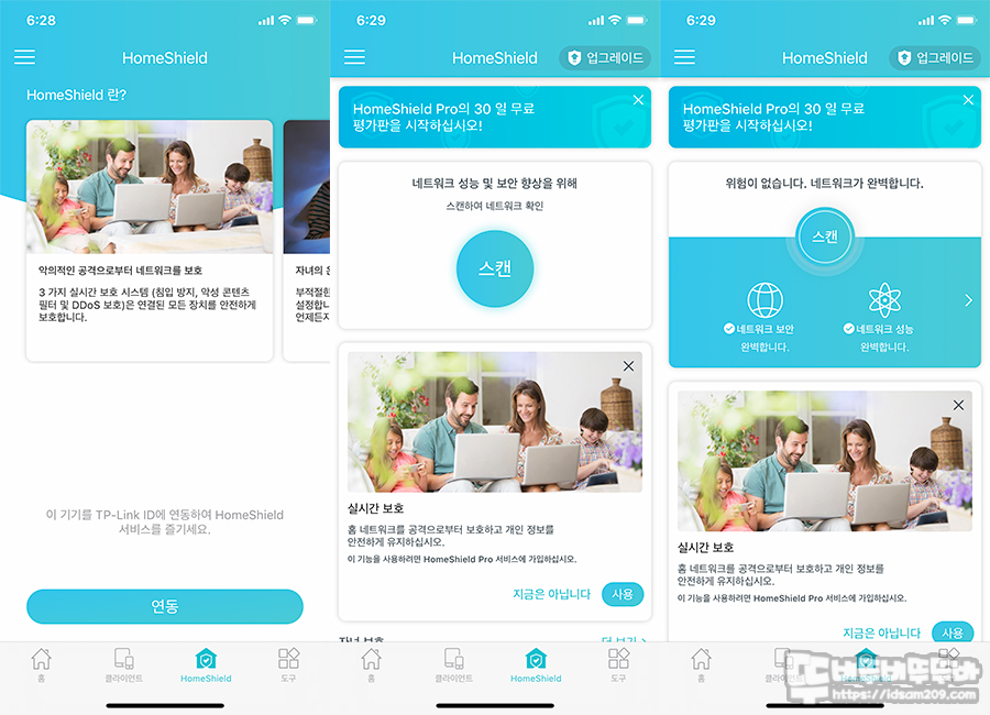 무료로 지원하는 HomeShield와 유료로 지원하는 HomeShield Pro로 보안 기능은 더 강화할 수 있으니 무료 지원을 사용해 보시고 필요에 따라 상단의 업그레이드 메뉴를 통해 HomeShield Pro를 이용하시기 바랍니다.