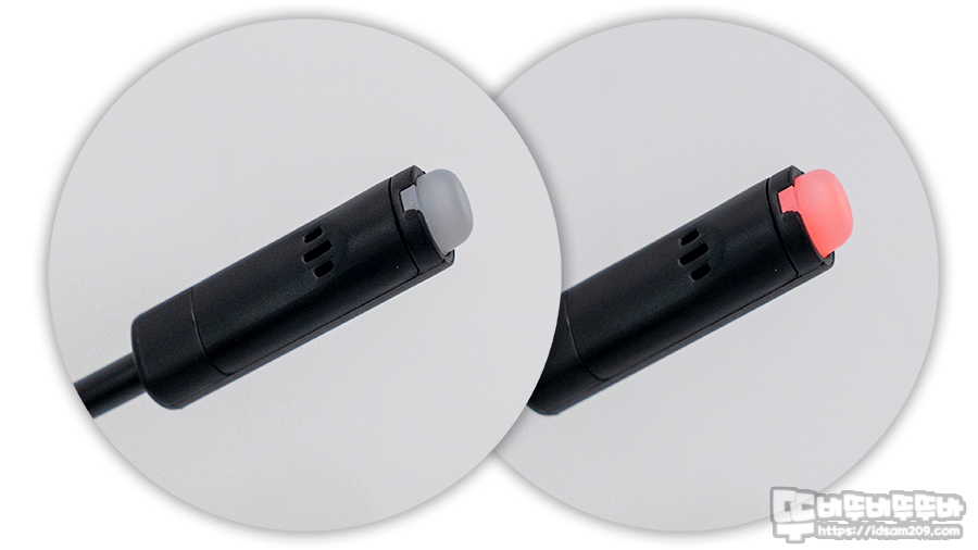 USB를 연결하여 사용 시 점등되는 LED 라이팅 모습은 과거에 주로 보았던 빨간색 체리 로고 모습으로 연출되어 인상적이며 마이크 On/Off 시 확인되는 마이크 LED 점등을 확인할 수 있습니다.
