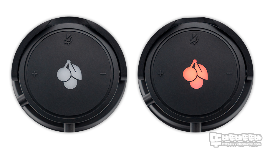 USB를 연결하여 사용 시 점등되는 LED 라이팅 모습은 과거에 주로 보았던 빨간색 체리 로고 모습으로 연출되어 인상적이며 마이크 On/Off 시 확인되는 마이크 LED 점등을 확인할 수 있습니다.