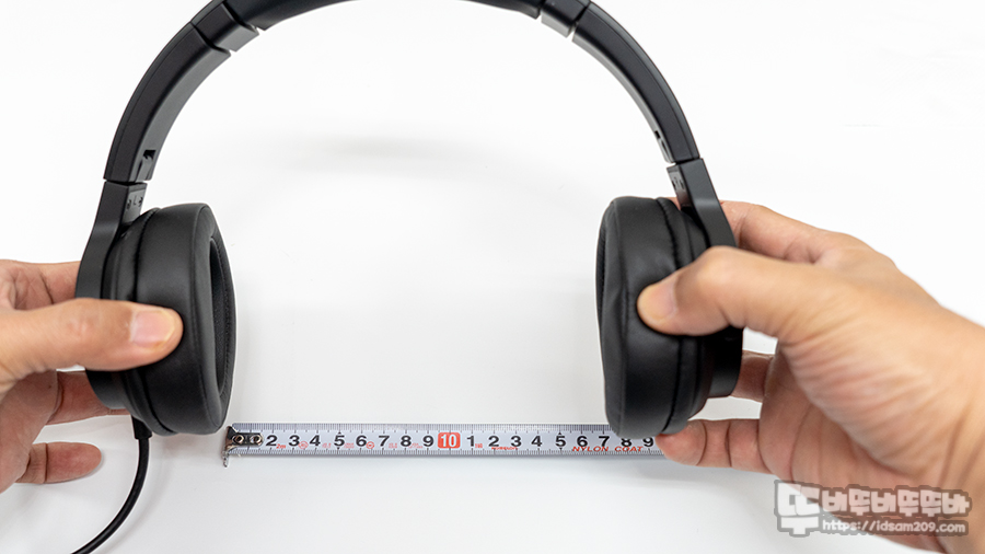 헤어밴드의 길이를 늘리지 않는 상태에서 이어패드가 11자 형태로 유지되는 상태로 최대로 늘려보면 약 7cm, 길이 조절을 최대로 하여 늘려보면 약 21cm로 꽤 여유로움을 확인할 수 있는데요.