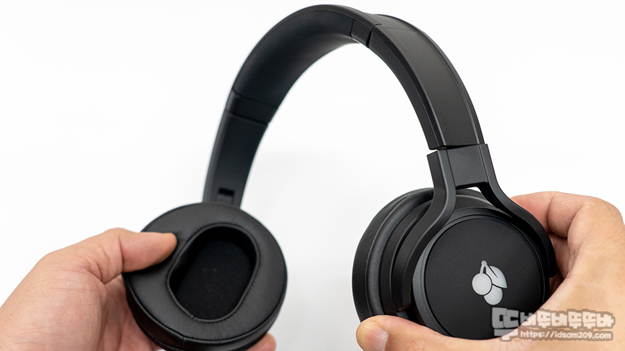 보통은 도넛 모양의 이어패드 디자인을 사용하지만 체리 HC 2.2 게이밍 헤드셋에는 귀 모양만 수납이 되는 형태로 패드 뒤쪽의 면적을 넓게 하여 귀 뒷부분 뼈 부분에 패드가 안착되어 지지하는 형태로 귀 눌림을 최소화하며 PU 소재의 인조가죽을 사용하여 밀폐력을 강화되는 느낌을 줍니다.