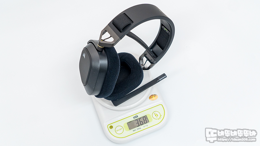 1g 단위로 측정 가능한 디지털 저울로 무게 측정 시 약 368g으로 그렇게 경량형 헤드셋은 아니지만, 개인적으론 착용 후 심하게 무게감을 느낄 수 있는 정도는 아니었습니다.