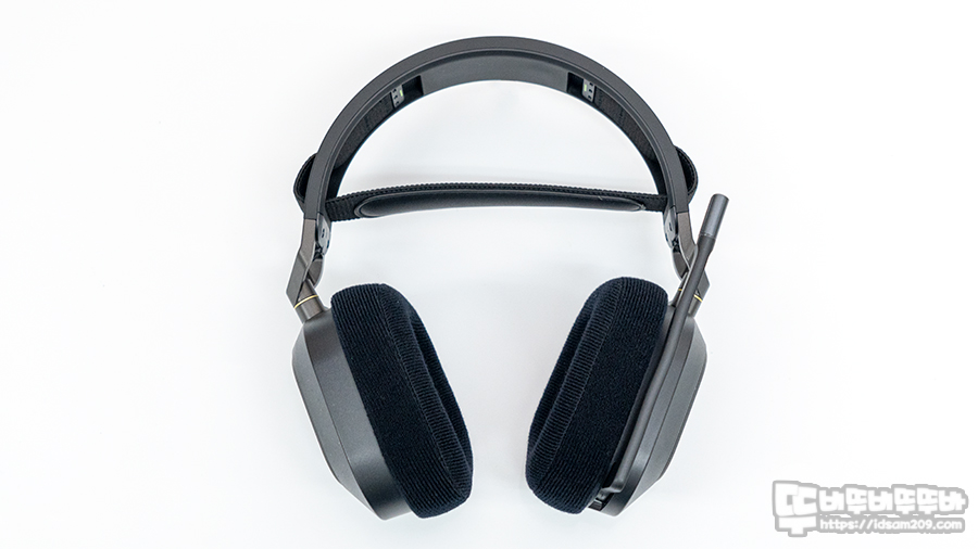 이어컵 하우징의 각도를 조절하는 연결 부위가 위쪽에 위치하여 그런지 헤드셋 착용 시 이어패드의 윗부분이 먼저 닿고 이어패드 아랫부분이 살짝 뜨는 느낌을 주는데 손으로 이어컵 하우징의 각도를 조금 조정해야 만족스러운 착용감을 느낄 수 있었습니다.