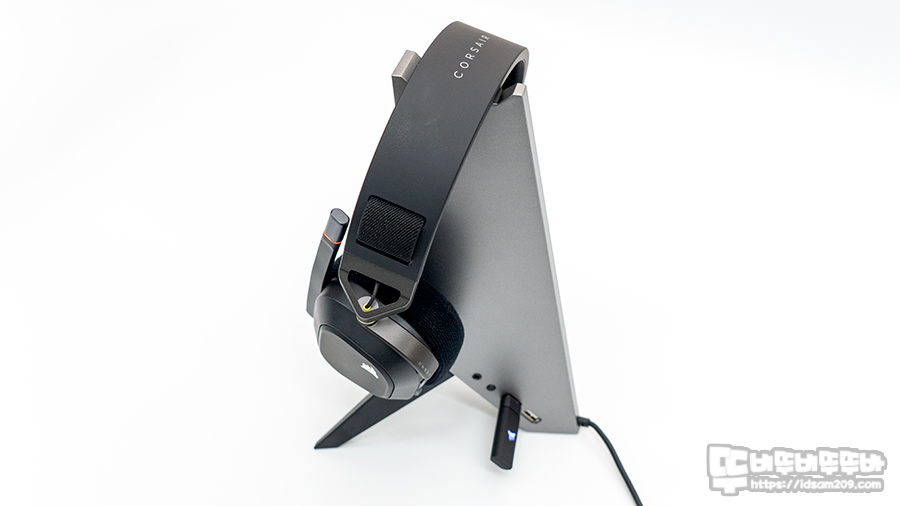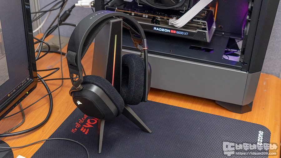 제닉스 STORMX RGB 헤드셋 거치대에 리뷰 작업 중인 커세어 HS80 무선 게이밍 헤드셋을 거치해 보았습니다.