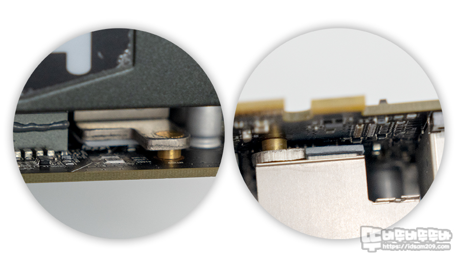 앞서 설명드린 것처럼 간접 냉각 방식이기에 그래픽 카드 GPU의 냉각 효과를 도움이 되기 위해서는 그래픽카드의 PCB와 백 브래킷이 내부가 서멀패드로 연결되어있는 경우 직접적인 도움이 될 거 같네요.