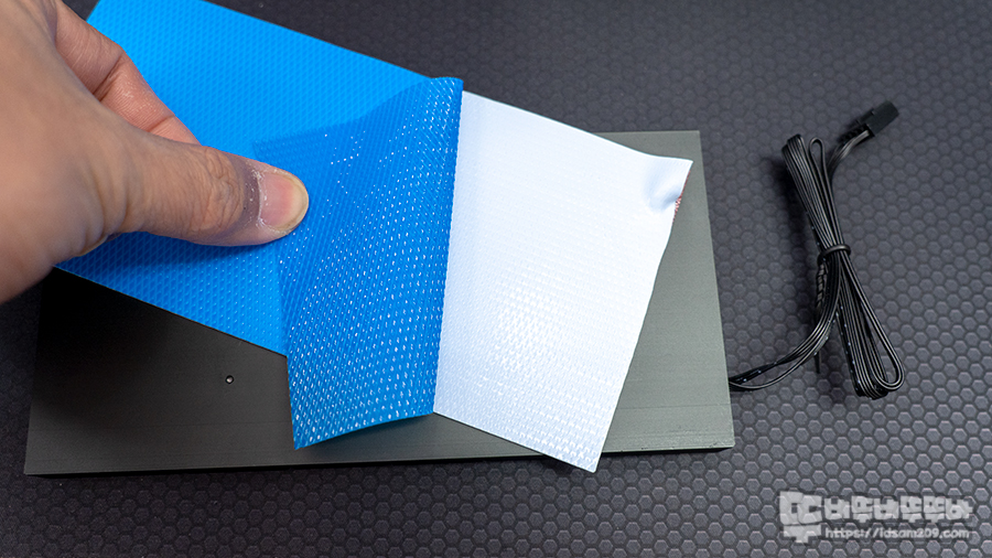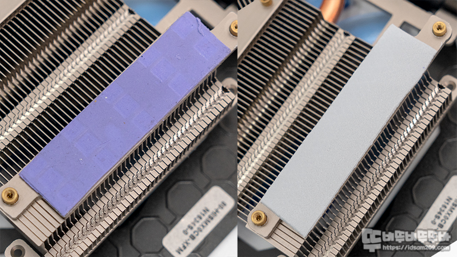 양면으로 보호필름이 부착된 서멀패드의 한쪽면의 보호필름을 제거 후 히트싱크에 부착하고 반대편 보호필름을 제거해주면 기본 작업이 완료됩니다.