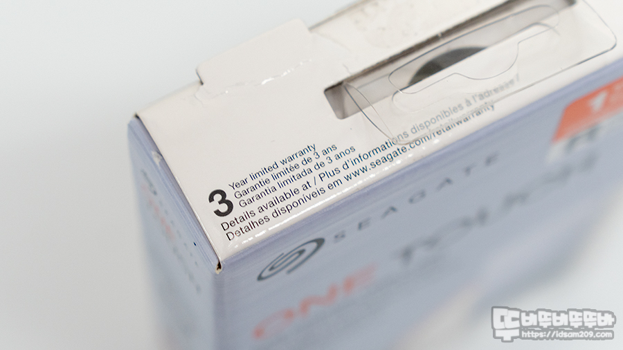 패키지 바닥면에 정품 홀로그램 스티커와 상단에 표시된 보증기간 3년 지원 내용.