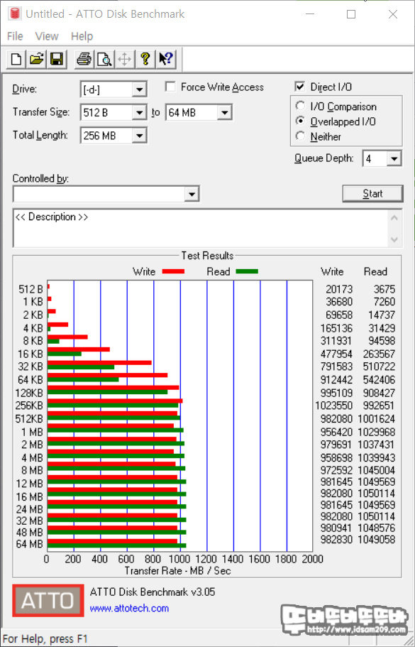 ATTO 테스트에서도 CrystalDiskMark와 비슷한 성능을 확인할 수 있었습니다.