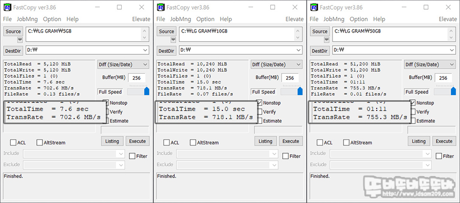 최대 전송속도를 확인하기 위해 5GB / 10GB / 15GB 더미 파일을 만들어 노트북에서 외장 SSD로 그리고 그 반대로 파이를 복사해 보았습니다.
