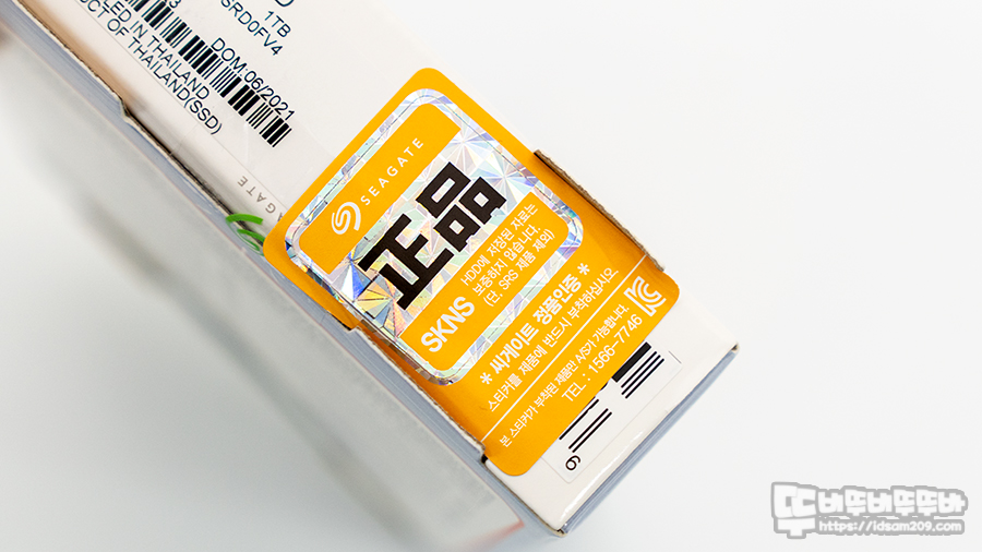 패키지 바닥면에 정품 홀로그램 스티커와 상단에 표시된 보증기간 3년 지원 내용.
